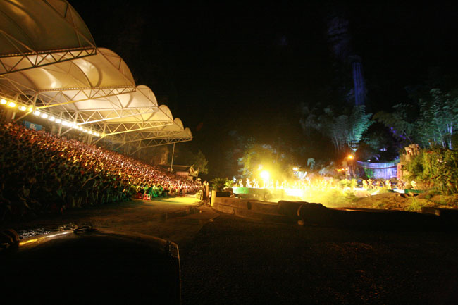 The Ancient Mystical Legend of Zhangjiajie 《武陵魂•梯瑪神歌》是一場記述土家族起源、演變、戰(zhàn)爭、生產(chǎn)生活等內(nèi)容的大型立體山水實(shí)景演出,揉合了音樂、舞蹈、文學(xué)等多種藝術(shù)形式,如幻如夢的舞美燈光,搖曳生姿的原生態(tài)歌舞……濃縮了土家族數(shù)千年的發(fā)展歷史,400多名演員以自然淳樸的表演充分的展示了土家的民族文化特征,給游客帶來了耳目一新的感受。一場視聽的饕餮盛宴,一曲驚天地、泣鬼神的曠世古歌,給人山水文化光影視聽的享受!境銎罚簭埣医缣莠斏窀栉幕瘋鞑ビ邢薰尽
