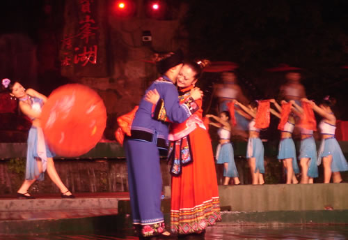 姑娘出嫁,為女人一生中最大的喜事,本應(yīng)充滿幸福、歡樂的氣氛。然而,舊時湘西、湘南、鄂西、川西(成都等地)、黔東(銅仁、凱里一帶)諸地,卻流行著一種與之完全相反情調(diào)的古老婚俗——“哭嫁”。也就是在姑娘“出閣”之前,不但新娘本人哭得很傷心,像淚人一般;而且,新娘的母親、姐妹以及姑媽、姨媽、舅媽及其他交往較多的女友,都要陪著新娘哭。湘西土家族哭嫁的風(fēng)俗尤為普遍、濃厚,不但哭嫁的時間較長(少則十來天,多達(dá)個把月),而且哭嫁歌也保存得古樸、完整。 姑娘出嫁為什么要哭?哪有那么多的東西可哭?這是一種蘊含甚為豐厚的人生禮俗,也是一種饒有興趣的婚俗事象。 俗話悅:“人不傷心不落淚!惫媚锍黾拗砸蓿且驗樵谂f式婚姻制度下,女孩(尤其是勞苦大眾家庭的女孩)總是作為犧牲品“拋”(賣)給夫家的,她們的身心受到極大傷害。因此,湘西等地的女孩在出嫁之前要哭泣,要呼號,哭嫁歌就是感情發(fā)泄的最好表現(xiàn)方式。 哭嫁的源起 哭嫁的風(fēng)俗,不知道起源于什么時候。戰(zhàn)國時期,趙國的公主嫁到燕國去作王后,她的母親趙太后在臨別時"持其踵,為之泣,祝曰,必勿使返。"大約就是后來長盛不衰的哭嫁風(fēng)俗的濫觴了。 這種風(fēng)俗,直至清末還盛行于四川農(nóng)村中,隨地區(qū)變化而大同小異。解放前,聽老人們說,早些時候,沒有嫁而不哭的人家。如果出現(xiàn)嫁而不哭的姑娘,也會被鄰里看作沒有教養(yǎng)的人,傳為笑柄;相傳有出嫁姑娘不哭而遭母親責(zé)打的事,這位母親當(dāng)然算得上是入流導(dǎo)演了。 舊時宣講故事中,有花轎臨門,父親強(qiáng)令哭《迎風(fēng)罵媒歌》的情節(jié),可知哭嫁是有歌詞的,帶有表演性質(zhì),原是用來渲染氣氛,以悲襯喜;不過,因為婚姻是包辦的,真哭真罵的也不會少。 抗日戰(zhàn)爭后期,風(fēng)氣較開,哭嫁之風(fēng)已不盛行,而老人們卻還在津津樂道,哭的方式是,從婚期前一個月的首日起,入黃昏,姑娘訴哭約一個小時,其聲嗚嗚。十天以后,她的母親加入"陪哭";又十天以后,她的祖母加入陪哭。這家沒有諸姑姊妹,人們說,如果有的話,也應(yīng)當(dāng)加入陪哭行列的。 哭嫁在川西叫"坐堂"。清代吉道人《味蔗軒隨筆·坐堂詞》云:"婚姻之禮,各省風(fēng)俗不同。然酌禮準(zhǔn)情,各省亦大同小異。凡男家娶婦先賦之詩,謂之'催妝';女家親串頌女之詞,謂之'坐堂'。坐堂者,女當(dāng)喜期將近之先數(shù)夕,其諸姑伯姊,置酒為女祖餞,各述吉祥之詞,以為頌美,女則申己之意以答。女左右更有少女,則隨而嫻習(xí)者也。其詞要多鄙俚,然有音韻凄清,風(fēng)格遒勁,如古歌古謠者。羅江明府蔡,微服巡查鄉(xiāng)里,一日行至某處,值有女子歸,諸娣姒咸以諛詞頌女,女申意以答。忽風(fēng)吹句入耳,詞曰:'鳳凰落在桌子上,哪個女兒肯離娘'。一字一轉(zhuǎn),音韻凄其,誰謂天籟之鳴,不在愚夫愚婦耶!"云云。吉道人姓周名際唐,成都人。吉道人記得明明白白,可惜他只記了一句哭嫁詞,難窺全貌。好在舊時坊間叢刻中有《訓(xùn)女哭嫁》一種,可見一斑。這本小書的目錄有《閨聲哭》、《娘訓(xùn)女》、《嫂哭妹》、《哭爹媽》、《哭哥嫂》、《花轎到屋哭》、《哭叔爺》、《哭兄弟》、《哭外公外婆》、《哭舅爺》、《拜香火哭》等等,編次有點凌亂,似乎隨手所記,未經(jīng)文人之手。遙想《詩》十五國風(fēng)未刪之時,大約也不過如此吧! 閨聲哭 娘聽后園鳥雀驚,要聽房中女兒聲。 我娘當(dāng)門苦葛藤,手攀苦葛訴苦情。 我娘苦情苦過了,女兒苦情才起根。 ............ 桔子開花葉子青,陽雀開聲我開聲。 新打銅盆才裝水,新打剪刀兩面青。 娘不開口我開口,娘不開聲我開聲。 當(dāng)門一根木蓮樹,目連樹上掛卷經(jīng)。 一本經(jīng)書背完了,未見我娘來開聲。 虧了我娘睡得穩(wěn),爹媽眼淚貴如金。 哭爹媽 月亮彎彎照華堂,女兒開言叫爹娘。 父母養(yǎng)兒空指望,如似南柯夢一場。 一尺五寸把兒養(yǎng),移干就濕苦非常。 ............ 勞心費力成虛恍,枉自爹娘苦一場。 哭兄弟 黑漆茶盤烏木頭,姐姐離娘弟不留。 留到姐姐吃你飯,留到姐姐穿你衣。 兄弟當(dāng)家掙家忙,嫁了姐姐買地方。 上頭買齊潼川府,下頭買齊遂寧鄉(xiāng)。 ............ 這個本子所記是川北的歌詞,以前所見的是川南,吉道人所記的是川西,川東,大約也不會大異的。遺憾的是,該書所記哭嫁詞雖有"只怨媒人莫良心"等語,卻沒有列出"罵媒專目,大約是怕媒人太難堪了吧! 其實,罵媒是哭嫁中必不可少的節(jié)目,也是最具反抗色彩的哭嫁歌詞。舊社會,婦女無婚姻自由可言,由于"三從四德"的束縛,平時對于自己的終身大事幾乎不能置一詞,全由媒人和父母擺布;因此,這登花轎之前的"罵媒",便是難得的發(fā)泄機(jī)會。這早已反映在戲曲和民間說唱等藝術(shù)之中。 以前,川劇《柳蔭記》有《英臺罵媒》一折,英臺罵媒人,言詞激烈,聲色俱厲,充分表現(xiàn)了祝英臺剛烈的性格和反封建精神。她罵道:"提媒婆,更恨她,胡言亂語嘴喳喳......唯愿你,房屋遭火化,田園水推沙。"但這場戲現(xiàn)在卻被刪掉了,五六十年代還有的,全國第一屆戲曲會演的川劇《柳蔭記》也有這一折,是陳書舫演的祝英臺,得了一等獎。現(xiàn)在城里人大約以為媒婆不必罵了,但偏遠(yuǎn)地區(qū),媒婆似乎還在肆虐。