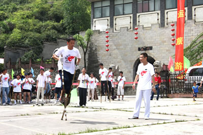 張家界高花燈亦稱高皇燈,是流行于永定沅古坪一帶富有民族特色的舞蹈。表演時,12人至24人不等。配有鑼、鈸、嗩吶、鼓等樂器。每人手中拿一盞紙扎燈籠,內(nèi)點蠟燭兩根,頂扎一木偶像,用五色紙剪成戲文故事如“八仙” 、“瓦崗寨”,“梁山英雄 ”之類。高花燈表演有一套程式,要求東起西落,進一個“半邊月”,出一個“月團圓”,舞個“太極圖”。亦可進民房表演,叫“愿燈”,多為祝福、還愿或為某家喜事湊趣。打吆喝、打口哨則只能到戶外表演,叫“眾燈”,是讓大家看的。其形式又分民燈、戰(zhàn)燈。前者表演 古代先民的遷徙、繁衍、勞動、生活;后者表演打仗破陣。隊形變化有“織籬笆”、滾柱頭”、“十八斗”、“螺螄轉(zhuǎn)頂”、“八卦陣”、“過天星”、“一字長蛇”等二十余種。如破“象棋盤陣”,主人插三十二根香,擺成棋盤陣,表演時,主人舉紅傘,玩燈者舉黑傘,從河道進,將眾“子”一一吃掉(即踩香),這是斗智的競賽。只見燈火如流星般穿插舞蹈 ,旁邊配以龍燈互舞(配龍玩燈,是高花燈的主要特點之一),那激起的鑼鼓聲、吆喝聲、口哨聲,掀起有節(jié)奏的聲浪,熱烈而歡快。 張家界高花燈發(fā)祥于張家界市永定區(qū)沅古坪鎮(zhèn)等地區(qū),與沅古坪地區(qū)接壤的沅陵、桃源、慈利等周邊區(qū)縣也有少量玩高花燈的習慣。 高花燈的燈代表著光明幸福,12個燈表示12個月,月月平安無事。每年春節(jié),每個村寨都要操練一班高花燈,辭舊迎新。制作時,藝人用竹篾和紙扎糊成12或24個燈籠,在燈籠下加上一個長柄燈托,并在燈籠上扎上五顏六色的“故事”,如“八仙”、“耿氏送子”等。夜晚,在燈籠里點上木油臘燭,一人舉一個燈籠,邊舞邊組成多種隊形。一眼望去,流光閃爍,尤如銀河戲舞。 張家界高花燈不但為本鄉(xiāng)本土的觀眾所喜愛,而且受到海內(nèi)外朋友及國際友人的高度贊賞。因為它是中國古老的民間舞蹈代表,它以自成體系的記譜方法,延繼著中國舞蹈的血脈,以其悠久的舞蹈歷史和多元文化特征,被舞蹈界認為是“中國舞蹈歷史上的活化石”,極具學術(shù)研究價值和很高的審美價值。已列入全省第一批非物質(zhì)文化遺產(chǎn)保護名錄。 高花燈相傳起源于東漢章帝初年,時“ 中蠻”覃兒健在澧水中下游舉義反漢,與漢軍“戰(zhàn)于洪下”(相傳為今大庸紅土坪,待考),洪下“蠻人”用火 把跳舞為義軍吶喊助戰(zhàn),終因漢軍勢眾,覃兒健與義軍全部戰(zhàn)死(至今留下懸鼓坪、御甲埡、扎營山、烽火臺等古戰(zhàn)場遺跡)。以后,當?shù)匦U人每年都必在過 后年(從正月初一至元宵節(jié))打火把集會跳舞, 栽“ 陽樁”(土話栽跟頭),表示對“洪下之戰(zhàn)”的紀念 。久而久之,火把進化成燈籠和扎人物事故,表演也 有一定規(guī)矩。至今,這種舞蹈藝術(shù)還保留著古老、原始、粗獷、豪放、悲壯的特色。 |