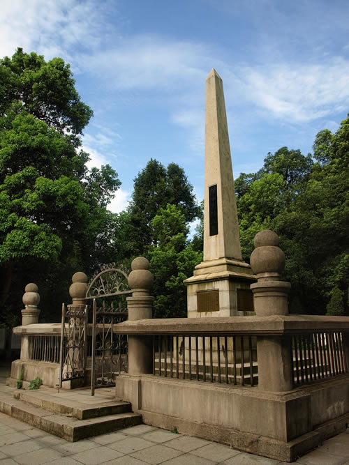 在岳麓山上。墓由三層臺階百余級踏步導(dǎo)入,墓碑為一四棱形的整塊4乳白色巖石琢成,全高約10米,因地處岳麓山高峰開闊處,顯得格外聳拔、挺秀、眺望湘江江,長沙景物盡入眼底。黃光(1874—1916),朱名軫,號杞園,又號克強,湖南善化(今長沙)人,辛亥革命重要領(lǐng)導(dǎo)人,史有“孫黃”之稱。1904年組織華興會,翌年8月與孫中山、章太炎等人組織中國同盟會,曾生動并領(lǐng)導(dǎo)欽州、廉州(治今廣西合浦)、鎮(zhèn)獻(xiàn)花(今友誼關(guān))、河口、廣州等地區(qū)反清戰(zhàn)役起義,任民軍戰(zhàn)時總司令。南京臨時政府成立,任陸軍總長。袁世凱稱帝后,任討袁軍總司令。1914年赴美醫(yī)病,1916年病重回國,10月31日于上海病故,時年43歲,次年移柩長沙,國葬于岳麓山。為全國重點文物保護單位。