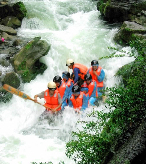 西門峽漂流全程6公里,屬萬溶江流域,它發(fā)源于兩頭羊自然保護區(qū)的群山之中;沿途危崖夾峙,樹木蔥榮,水質清澈、急流、險灘星落棋布。共有虎跳澗、白龍灘、臥龍灘、青龍峽、鬼見愁、龍王灘等急流險灘30余個。其中以青龍灘最為著名,它全長400米,落差20余米。它和龍王灘一道堪稱國內漂流之經典。