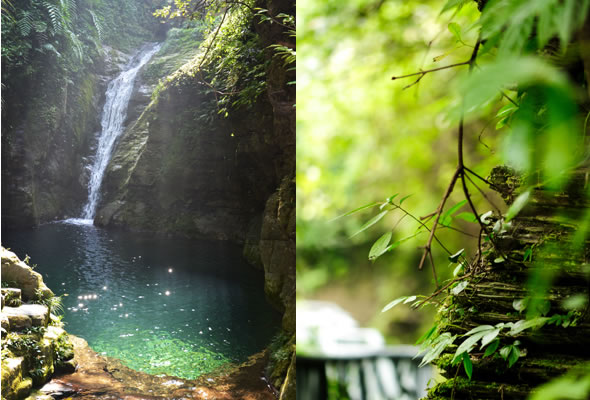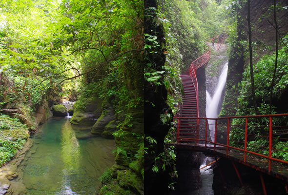 十八潭總名。稍作休憩,我們開始奔赴東線的景點(diǎn)。東線主要是以十八潭為主,下游有4潭:合潭、梳妝潭、魚潭、黑潭;中游有9潭:換衣潭、美人潭、石蛙潭、姊妹潭(3個(gè))、情侶潭(2個(gè))、二龍搶珠,上游有5潭:鬼谷神功(2個(gè))、幽潭、落銀潭(彩虹潭)、路邊潭。十八個(gè)潭深淺不一,淺則1米以上,深則4米左右,形狀各異,有的月牙形,有的豬腰狀,形狀不規(guī)則,石壁上水沖成潭,真是鬼谷神功,此處水質(zhì)細(xì)膩,加之綠林映襯,水色碧綠見底,猶如十八顆翡翠石鑲嵌在山林之間,涓涓溪流晶瑩剔透,飛流直下的瀑布,氣勢(shì)磅礴,蔚為壯觀, 下游的4潭,合潭、梳妝潭、魚潭、黑潭。合潭是仙女峽谷與十八潭的交匯處;梳妝潭的水清如明鏡,又因?yàn)樘秲蓚?cè)石頭的封閉,使這面鏡子靜止不動(dòng),很方便梳妝,照鏡子。在梳妝潭周圍,有一種植物屬于紅豆杉系列,它的形狀好似梳子,可以用來梳頭。魚潭可不能望文生義。魚潭,是在冬天的時(shí)候,所有的魚都聚集在這里過冬,除此之外,這個(gè)潭水淺見底,冬天魚苗聚集,是捕魚的好季節(jié)。黑潭,水深不見底,所以叫黑潭,F(xiàn)在已經(jīng)看不見梳妝潭、魚潭、黑潭了,你猜為什么?建水庫,建水上樂園,淹沒了。 斷魂石的傳說。三國時(shí)期,高氏和蕭氏一對(duì)夫妻春節(jié)忙活,遇上了天門垮眼,受余震襲擊,打死了丈夫蕭氏。高氏思念丈夫,淚哭不斷,結(jié)果摔死潭中。人們經(jīng)常還能聽到哭聲傳來,不敢單獨(dú)行走,需成群結(jié)隊(duì)。后人為了鎮(zhèn)邪,雕刻一條蜈蚣驅(qū)趕哭魂,多年后,蜈蚣成精,天上打雷,巖石發(fā)光,遭雷所劈,成了斷魂石。 和尚姥,也就是丹灶峰,天門十六峰之一。相傳此峰為仙人化身,赤松子曾在此煉丹,許多詩人在此留下了美妙的詩篇,明代葉守禮《丹灶峰》: 懸崖峭壁隔塵寰,上有仙人學(xué)煉丹。 煉得丹成鶴已去,獨(dú)留丹灶在峰巒。 意思是說,在這險(xiǎn)峻秀麗的山峰上,赤松子潛心煉丹,不受塵世干擾,身心沉醉于秀美的山間,沉溺于丹藥的煉制之中。作者很是羨慕那種與世隔絕的超脫,那種執(zhí)著于自我理想的瀟灑,你羨慕不羨慕? 竹林叢生。我們要學(xué)習(xí)竹子的精神,中空、謙卑;我們要學(xué)習(xí)竹子的精神,抱團(tuán)生長;我們要學(xué)習(xí)竹子的精神,破土而出,節(jié)節(jié)高。 向家塔。打造農(nóng)耕養(yǎng)生游的地方。種田、種菜、種花,農(nóng)家餐館。 爛泥巴根。爛泥巴根和馬桑樹是同科,是這里獨(dú)特的一種樹。馬桑樹亦稱“千年紅”、“馬鞍子”,屬落葉灌木,馬桑樹多枝叢生,一簇一簇的,枝葉像傘蓋,因此“馬桑樹兒搭燈臺(tái)”。春風(fēng)一吹,滿山的馬桑樹、爛泥巴根就吐翠滴綠,顯示出強(qiáng)勁的生命力。打油詩一首: 青青枝條四方走, 肥肥大葉落上頭, 身在路邊無人問, 冬去春來樂悠悠。 秋天死亡,春天長勢(shì)更加茂盛,它的新生是通過死亡實(shí)現(xiàn)的。山川如此,植物也是如此,這里的一草一木無不透露著道家那種齊生死、等貴賤的精神。 這叫“常道”亭,“道可道,非常道”,據(jù)說是白狐與劉海相遇的地方。吊橋。 十八潭各具特色。 中游有9潭。第五潭叫換衣潭。巖石聳立,霧氣氤氳,巖壁上布滿水汽,猶如雨下。又因過道狹窄,行人需彎腰通過,未免雨水打濕衣裳,在此就要脫下身上衣物,通過后在第六潭再穿上。因此第六潭又叫美人潭,很幽深神秘的。第七潭叫石蛙潭,水淺,又比較平穩(wěn)、安全,春天產(chǎn)籽。余音回響,猶如蛙鳴,給人“聽取蛙聲一片”的錯(cuò)覺。 對(duì)面巖壁叫“臘肉鋪”,那條自上而下的溪流叫“酒長流”,客人來了,咱土家人熱情,臘肉下炕,苞谷燒,喝兩口! 第八潭第九潭叫情侶潭,比較隱蔽,他倆靜悄悄地談著情話,我們快走,不要打攪他們。 第十潭、十一潭、十二潭叫姊妹潭。下面那個(gè),水淺淺的,溫溫的,是幺妹潭,中間那個(gè)是二哥潭,上面那個(gè)是大哥潭。 潭的旁邊有珍稀植物馬蘭花,馬蘭花又名蝴蝶花、蝴蝶蘭,為多年生宿根草本花卉,根莖短粗,肥壯。花大新奇,花色絢麗,鮮艷奪目。花有藍(lán)、白、黃、雪青等色;ㄆ5-6個(gè)月,每次花可開花7-10天,頗耐觀賞。馬蘭花在我國栽培已有2000多年的歷史,目前歐、亞、非3洲均有分布,品種極多,難以計(jì)數(shù)。此花按植株高度不同可分3種類型:矮株型僅18-25厘米,中株型高25-70厘米,高株型可高達(dá)120厘米。馬蘭花喜陽光,適栽于背風(fēng)向砂質(zhì)土壤中。 馬蘭開花的童謠。他們?nèi)⒚眯r(shí)候情感深厚,常常一起跳皮筋。大家會(huì)跳嗎?會(huì)唱嗎? 小汽車,滴滴滴,馬蘭開花二十一, 二五六二五七,二八二九三十一, 三五六三五七,三八三九四十一, 四五六四五七,四八四九五十一, 五五六五五七,五八五九六十一 ! 還有紅豆杉,像梳頭的篦子,叫“篦子三尖杉”。還有蘭心草,中草藥,空中飄來蘭花的香氣,山谷中峭壁的蘭花,如芳芳人品善良高雅。蘭花如人品有宜人的香氣,蘭花有撩人的幽香,任何花卉的香氣都不能與蘭花比。這幽香時(shí)隱時(shí)現(xiàn),時(shí)濃時(shí)淡,時(shí)遠(yuǎn)時(shí)近。飄蕩在老道灣山谷中,給人清新和愉快的感受。 蘇轍有詩:“谷深不見蘭生處,追逐微風(fēng)偶得之”。 還有大葉榕、玉葉金花、秋海棠、臘蓮繡球、四字馬蘭、紅楓,秋天來臨,看!漫山紅遍,層林盡染。 聞道亭。孔子曰:朝